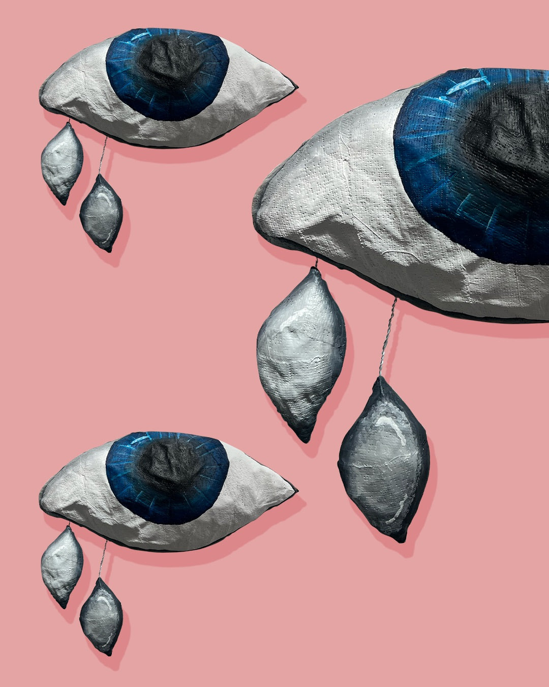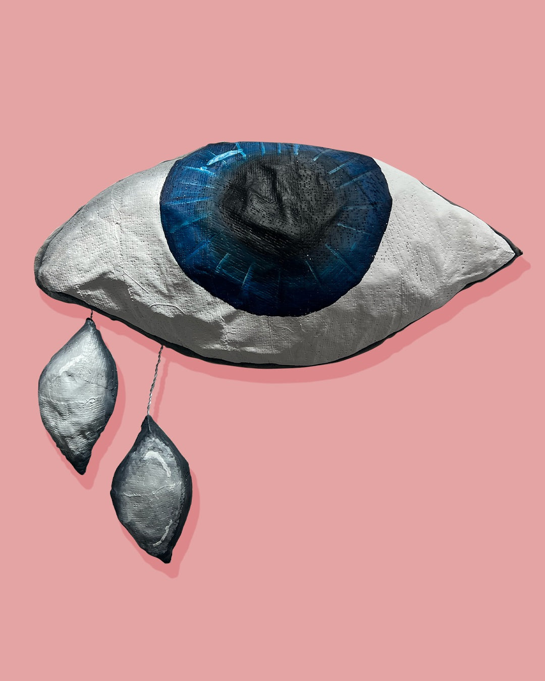 - Hand made using cardboard, paper, plaster, and acrylic paint.